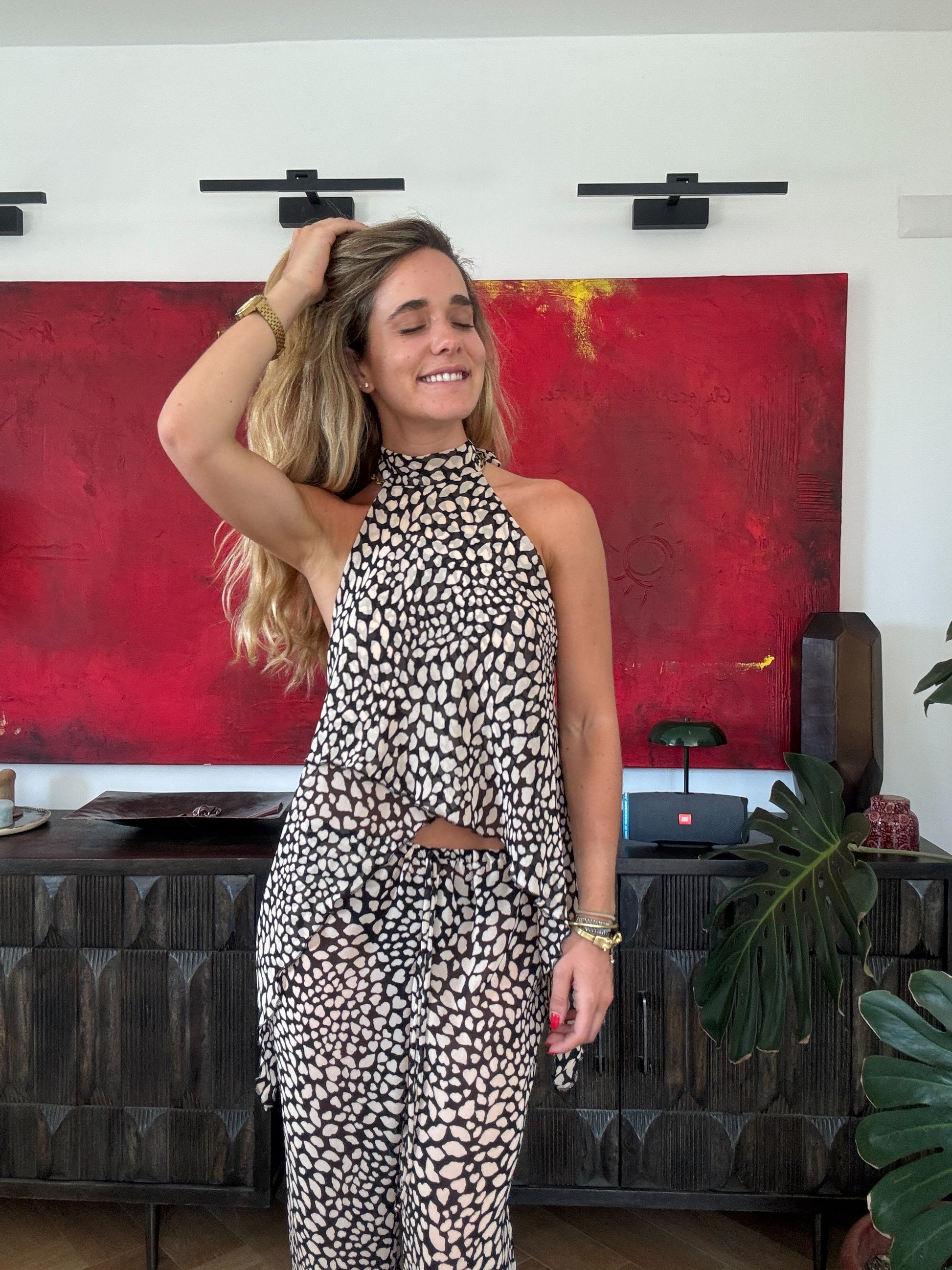 Las telas se cruzan por delante y por atrás, creando un diseño distinto y favorecedor, con caída a los lados que le da ese look relajado pero con onda.